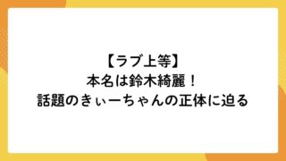 【Netflixラブ上等】本名は鈴木綺麗!話題のきぃーちゃんの正体に迫る
