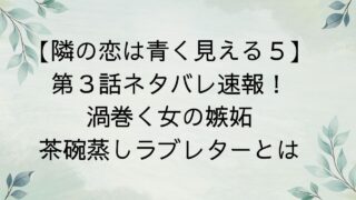 隣の恋は青く見える5 -Chapter TOKYO-」第3話のネタバレと考察をお届けします!まず今回もレイナ様の受け答えは勉強になりました!みんなが惚れる理由がわかる!また今回の放送で最も視聴者の心に残ったのは、元カノ同士の対立でしょう。特...