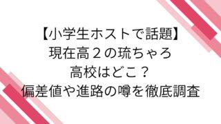 未分類 琉ちゃろの高校はどこ?【最新情報】偏差値や進路の噂を徹底調査 9年前に“小学生ホスト”として世間の注目を集めた琉ちゃろ。今はもう高校生になり、以前の姿からは想像もつかない黒髪好青年になっていることで、話題になっています。この記事では、具体的な学校名や「偏差値」の噂をチェックしつつ、彼が「琉ちゃろ 頭い... 2025.12.02 未分類