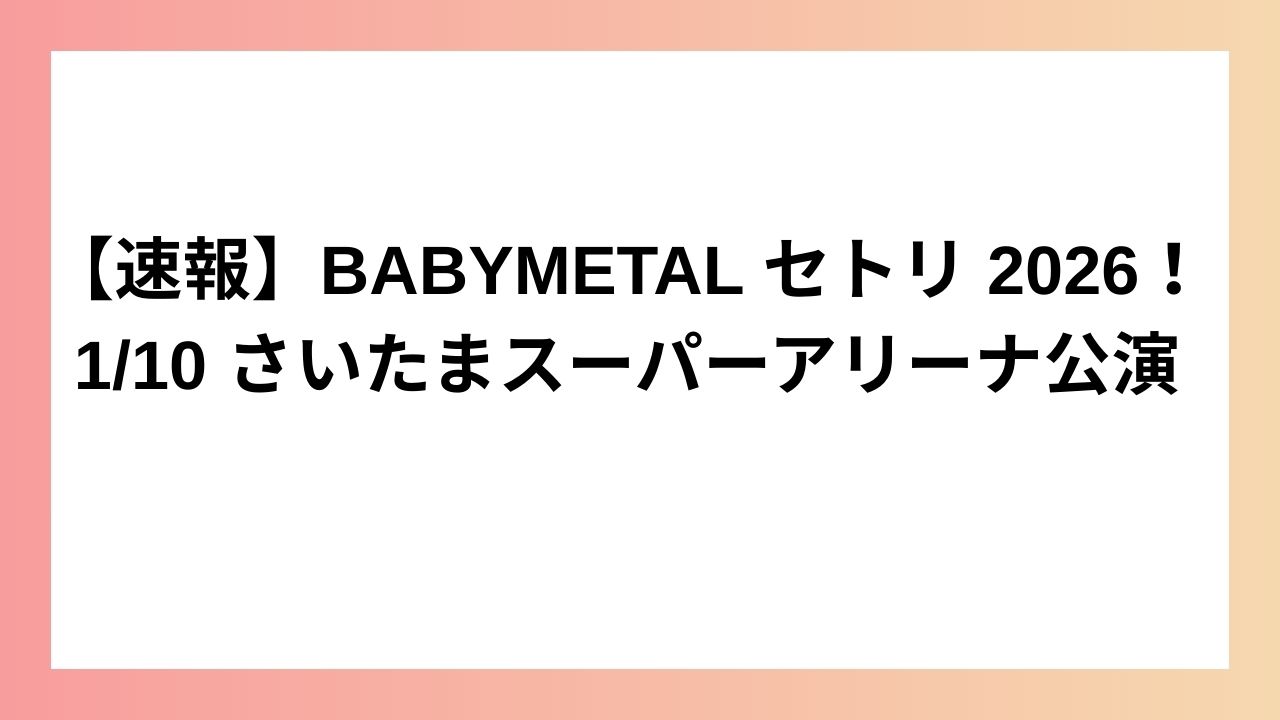 【速報】BABYMETAL 2026年1月10日 さいたまスーパーアリーナ セットリスト