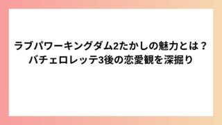 ABEMAの恋愛リアリティーショーラブパワーキングダム2に出演する「たかし」こと坂口隆志は、かつて『バチェロレッテ・ジャパン』シーズン3でファイナルローズを手にした人物として大きな話題を呼びました 。当時は「坂口隆志」として誠実さもありなが...