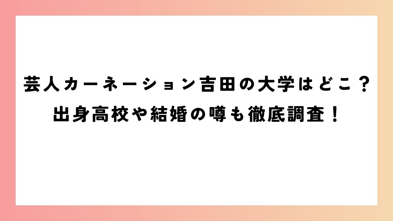 本記事では、カーネーション吉田さんの大学や学歴、プライベートな噂について情報を整理します。