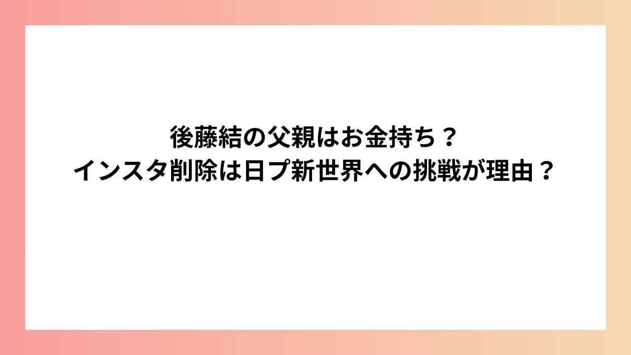 本記事では後藤結さんの父親はお金持ちなのかという疑問や、公式インスタのアカウントが削除された理由についてまとめました。