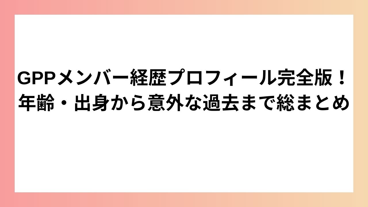 ここでは、GPPメンバーの経歴やプロフィールを徹底的に解説します。