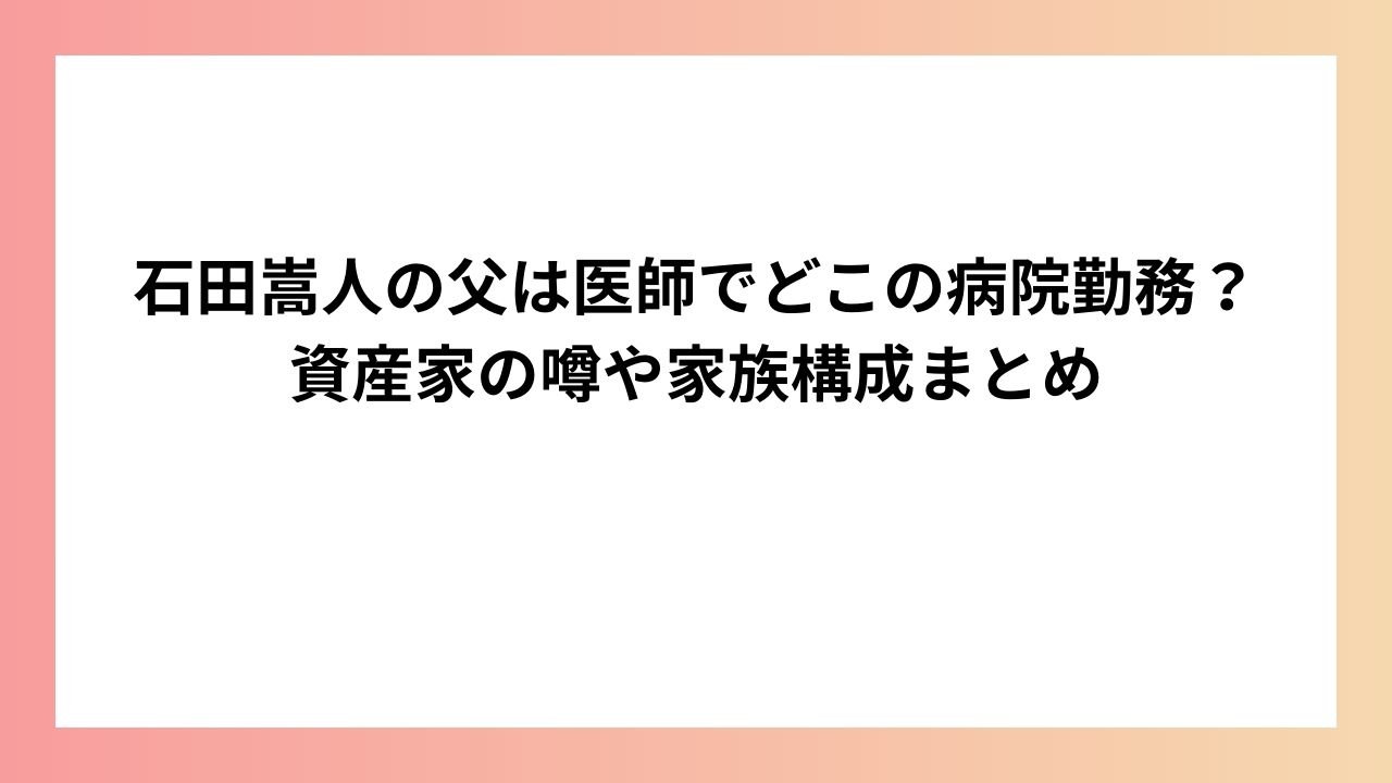 本記事では石田さんの父がどこの病院で勤務しているのか、家族構成や仲の良さについてまとめました。