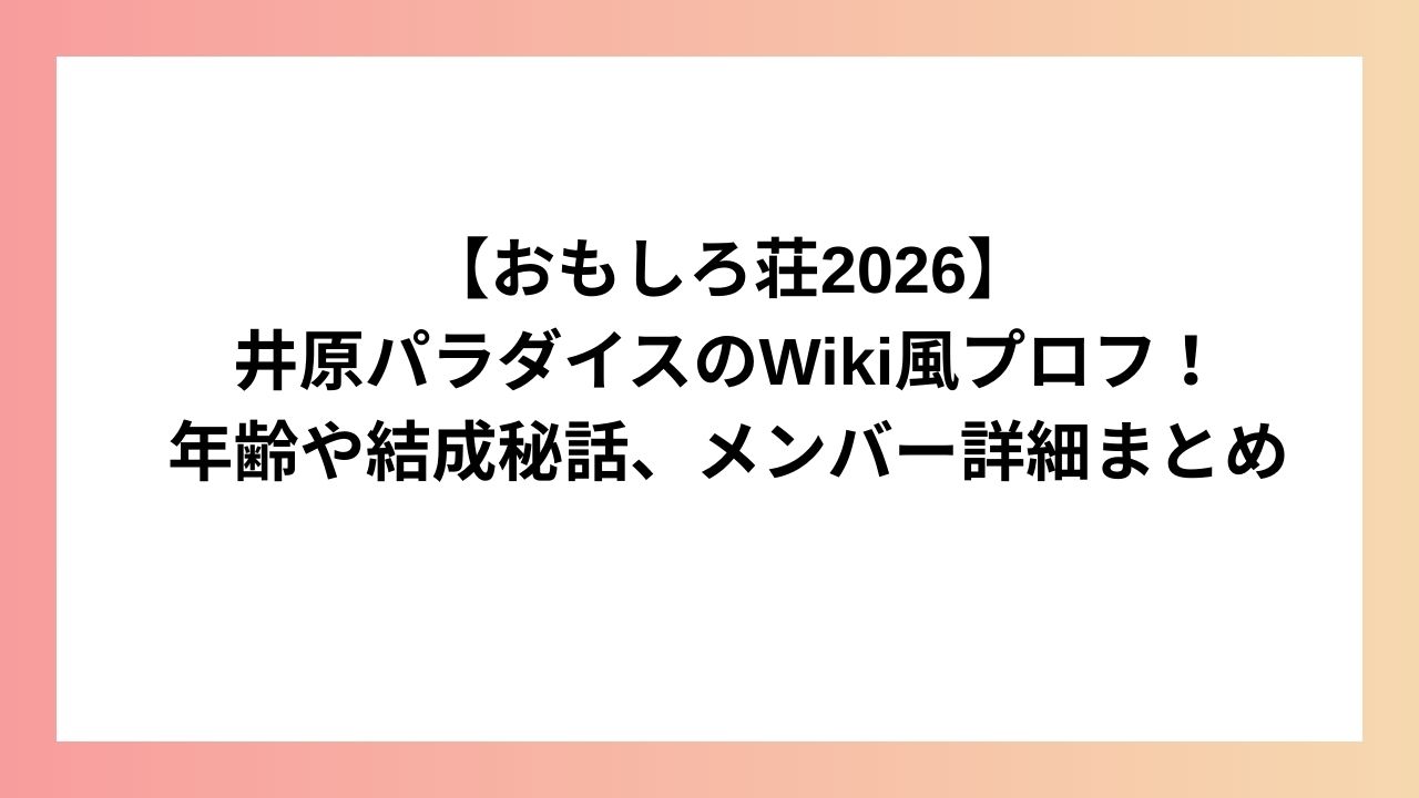 【おもしろ荘2026】井原パラダイスのWiki風プロフ!年齢や結成秘話、メンバー詳細まとめ