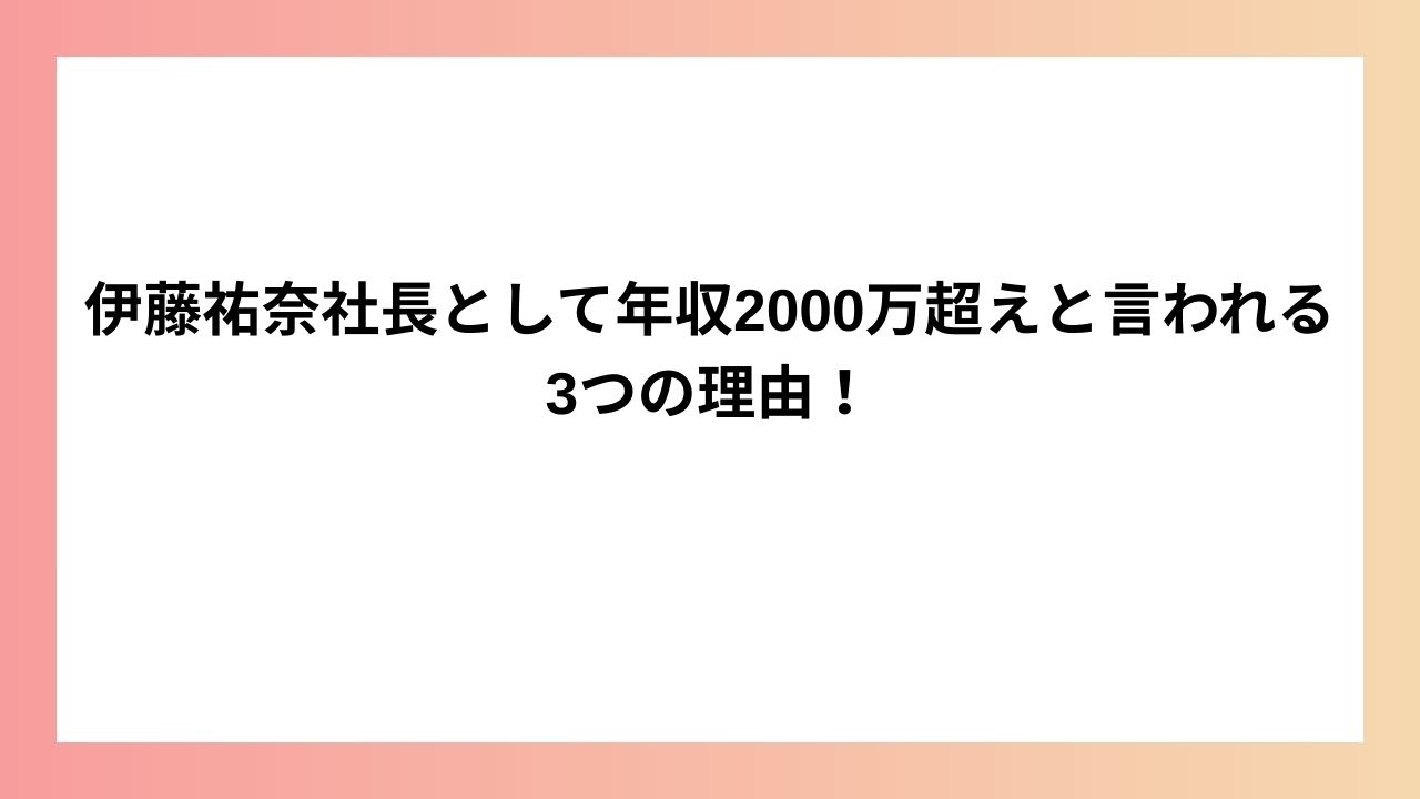 伊藤祐奈さんは社長としての年収が2000万超えと言われるのか3つの理由についてまとめました。
