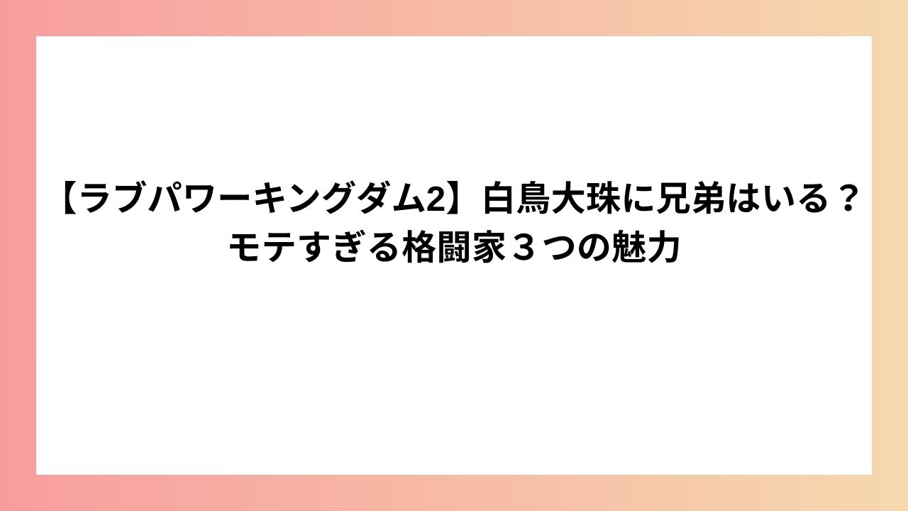 本記事では、白鳥大珠さんの兄弟事情や『ラブパワーキングダム2』で見せる「モテ男」としての魅力を徹底的に深掘りしていきます。