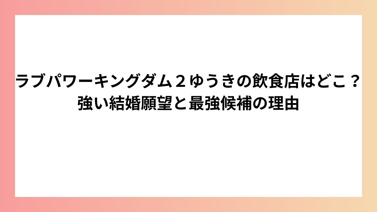 ラブパワーキングダム2に出演するゆうきが経営する飲食店の具体的な店名や場所、業態は、現在のところ公式では公開されていません。