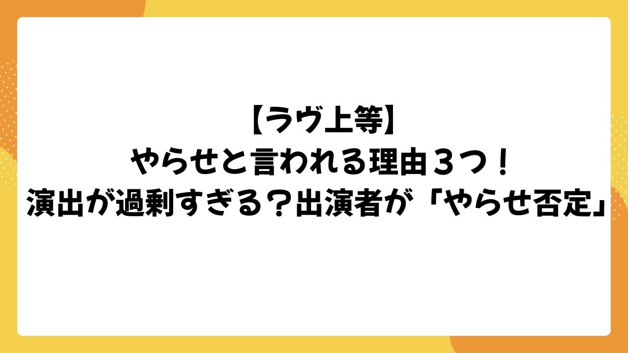 本記事では、なぜここまで『ラヴ上等』がやらせと疑われてしまうのか、具体的な理由を3つに分けて解説します 。