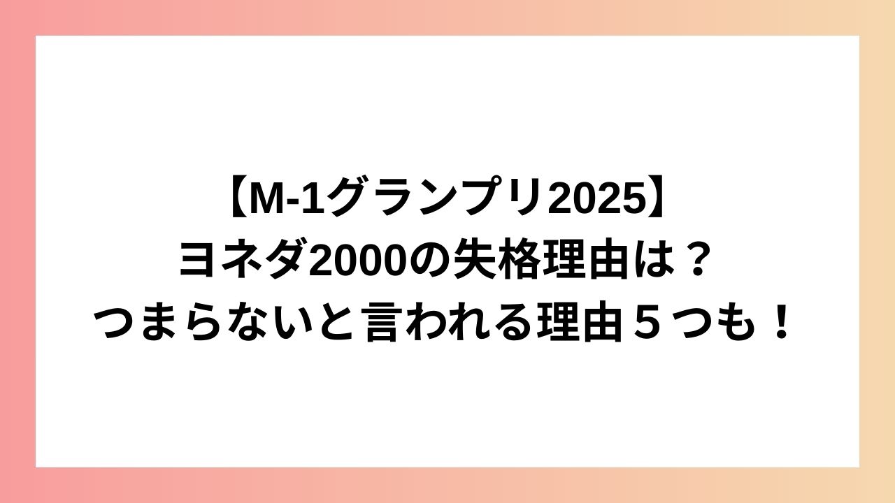 この記事では、ヨネダ2000がネットで話題になっている「失格」の理由とつまらないと言われる理由5つについてまとめました。