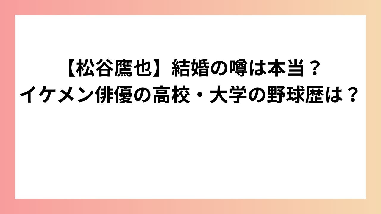 現時点では、松谷鷹也さんが結婚しているという確実な情報はありませんでしたが、