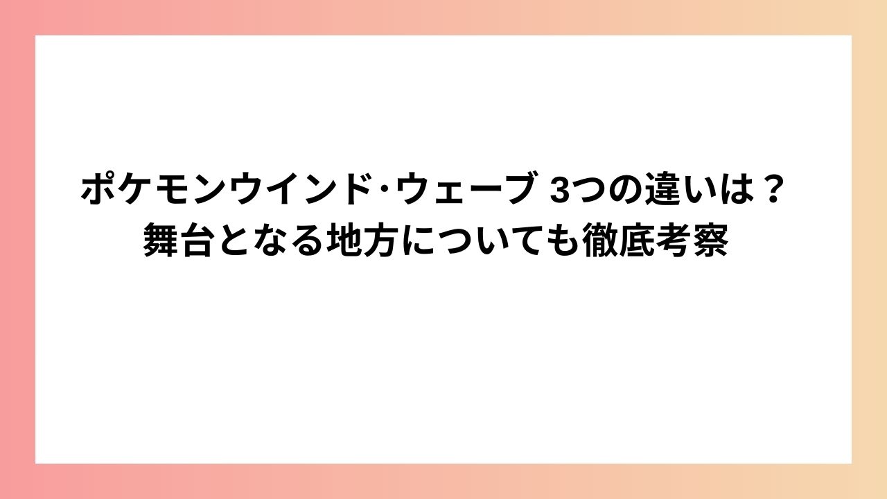 しかし、ポケットモンスター ウインド・ウェーブの違いについてファンの間では憶測が飛び交っています。