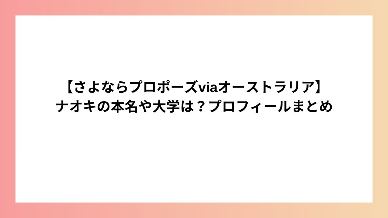 今回は『さよならプロポーズ via オーストラリア』に出演するナオキさんについて調査しました。