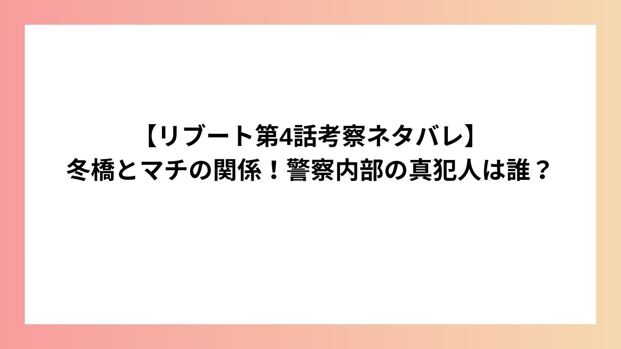 本記事では、リブート第4話予告を通じて、冬橋とマチの真の目的や、警察内部に潜む真犯人の正体についての考察をまとめました。