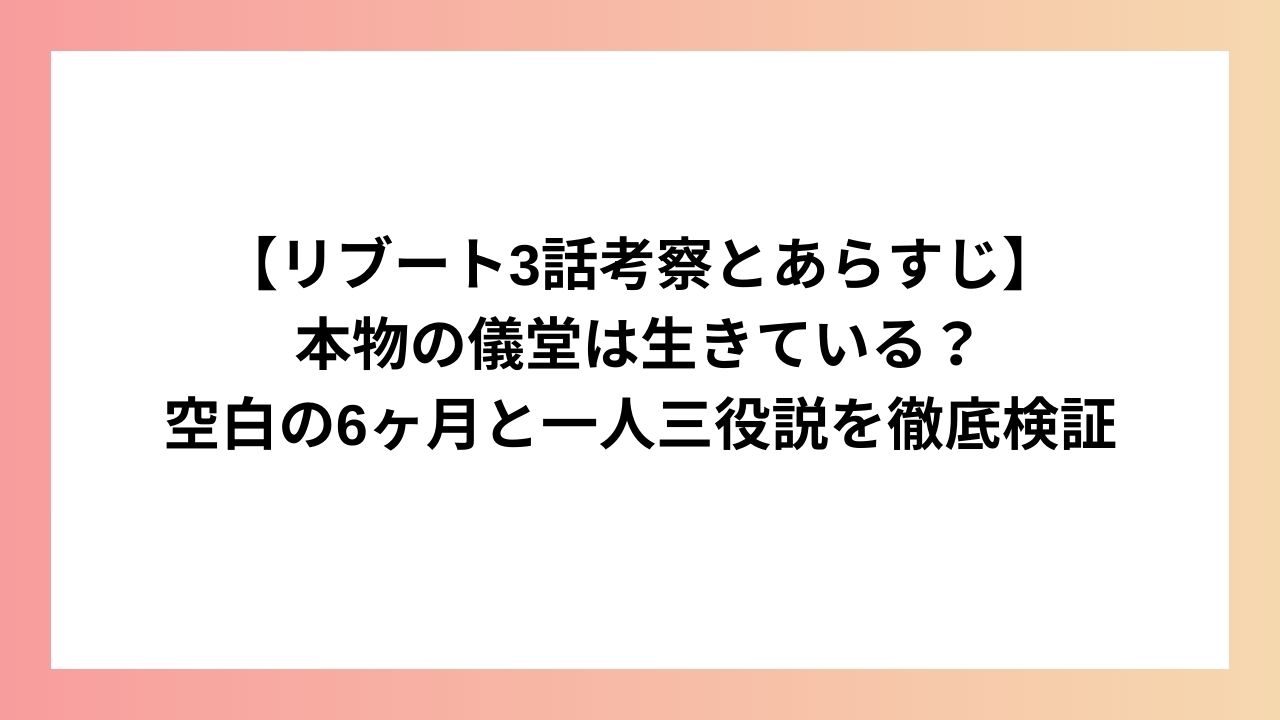 リブート3話の展開を踏まえると益々本物の儀堂が現在もどこかで生存しているのではないかと考えざるをえません!
