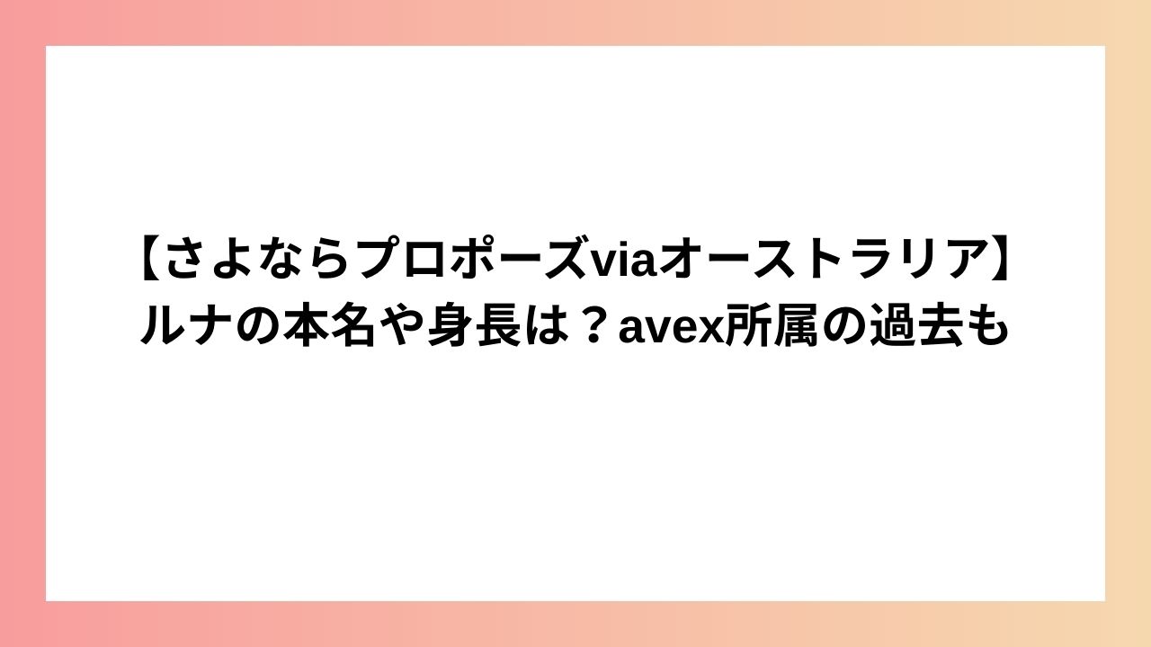 【さよならプロポーズviaオーストラリア】ルナの本名や身長は?avex所属の過去も