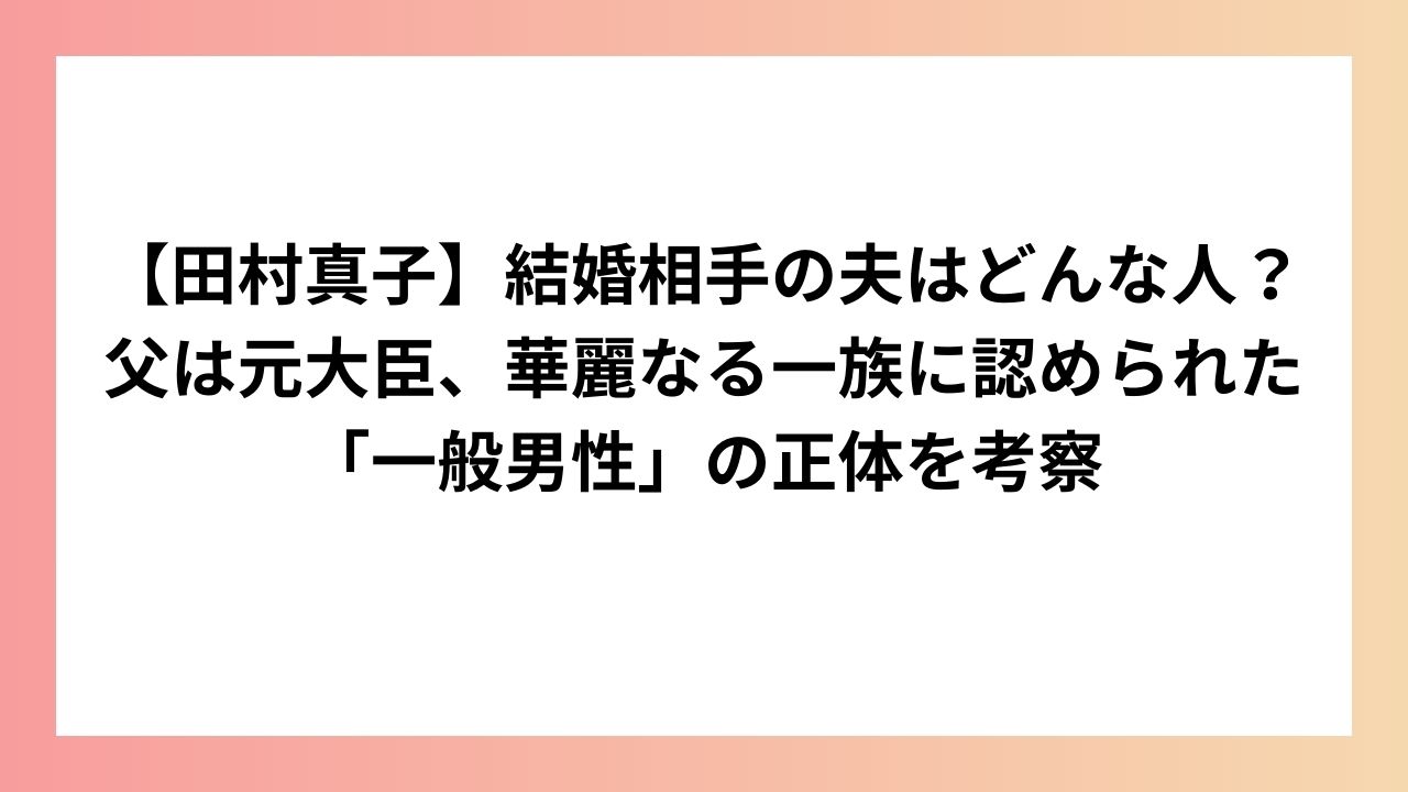 【田村真子】結婚相手の夫はどんな人?父は元大臣、華麗なる一族に認められた「一般男性」の正体を考察